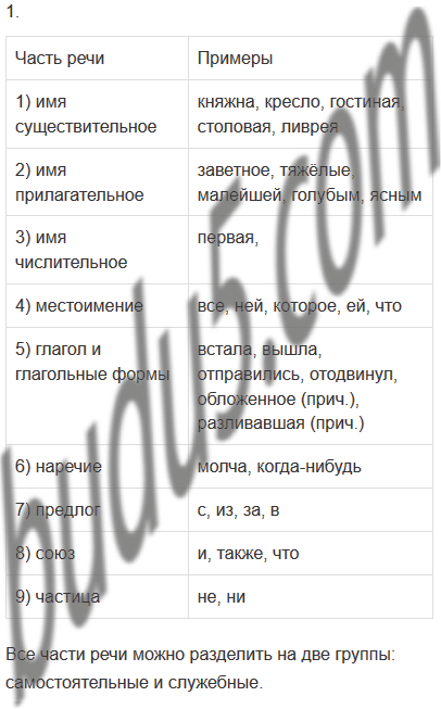 1. Заполните таблицу примерами из приведённых текстов. Затем, используя собранные материалы, расскажите о самостоятельных и служебных частях речи, обращая внимание на их сходство и различие.