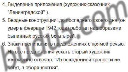Но ране(н, нн)ый измуче(н, нн)ый город прод..лжал жить творческой жизнью: в ос..ждё(н, нн)ом городе Шостакович написал свою знаменитую симфонию назва(н, нн)ую Ленинградской в подвалах Эрмитажа работали прославле(н, нн)ые художники архитекторы учёные отказавшиеся (не)смотря на пр..клонный возр..ст и гаснущее здоровье уехать из Ленинграда. Билибин замечательный художник(сказочник) до последнего своего дня он умер в феврале 1942 года работал над образами были(н, нн)ых русских б..гатырей. На все предложения уехать старый художник (не, ни)изме(н, нн)о отвечал Из ос..ждё(н, нн)ой крепост.. (не, ни)бегут а обор..няю(тся, ться).