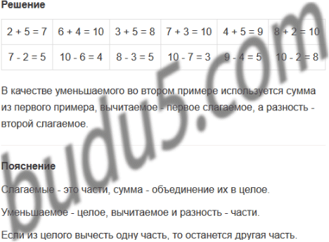 Задание № 6. Составь "домики" чисел 2, 3, 4, 5, 6, 7, 8, 9 и 10. Пользуясь ими, придумай и реши примеры на сложение и вычитание.