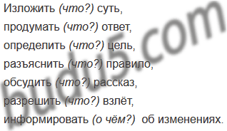 Изложить, продумать, определить, разъяснить, обсудить, разрешить, информировать.